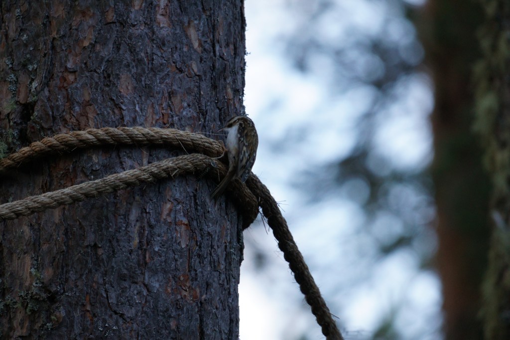 My original birding intent for this weekend was to sit in wait for ptarmigan and snow bunting in the hills, but with the wind making that miserable for both me and the birds, I headed to the RSPB reserve at Loch Garten instead. I had heard there were crested tits about and I was quite excited. When I arrived at the spot, there were a good few other hopeful birdwatchers, but slowly they all trickled away – it didn’t seem like the elusive stars would be putting on a show this evening. Eventually it was only me left, hovering near the birdfeeder, but I was far from disappointed. The crested tits may have cancelled their performance, but there was a riot of birdsong in the trees and tiny shapes flitted about me, swooping from branch to branch, diving onto the feeder and dashing away again.