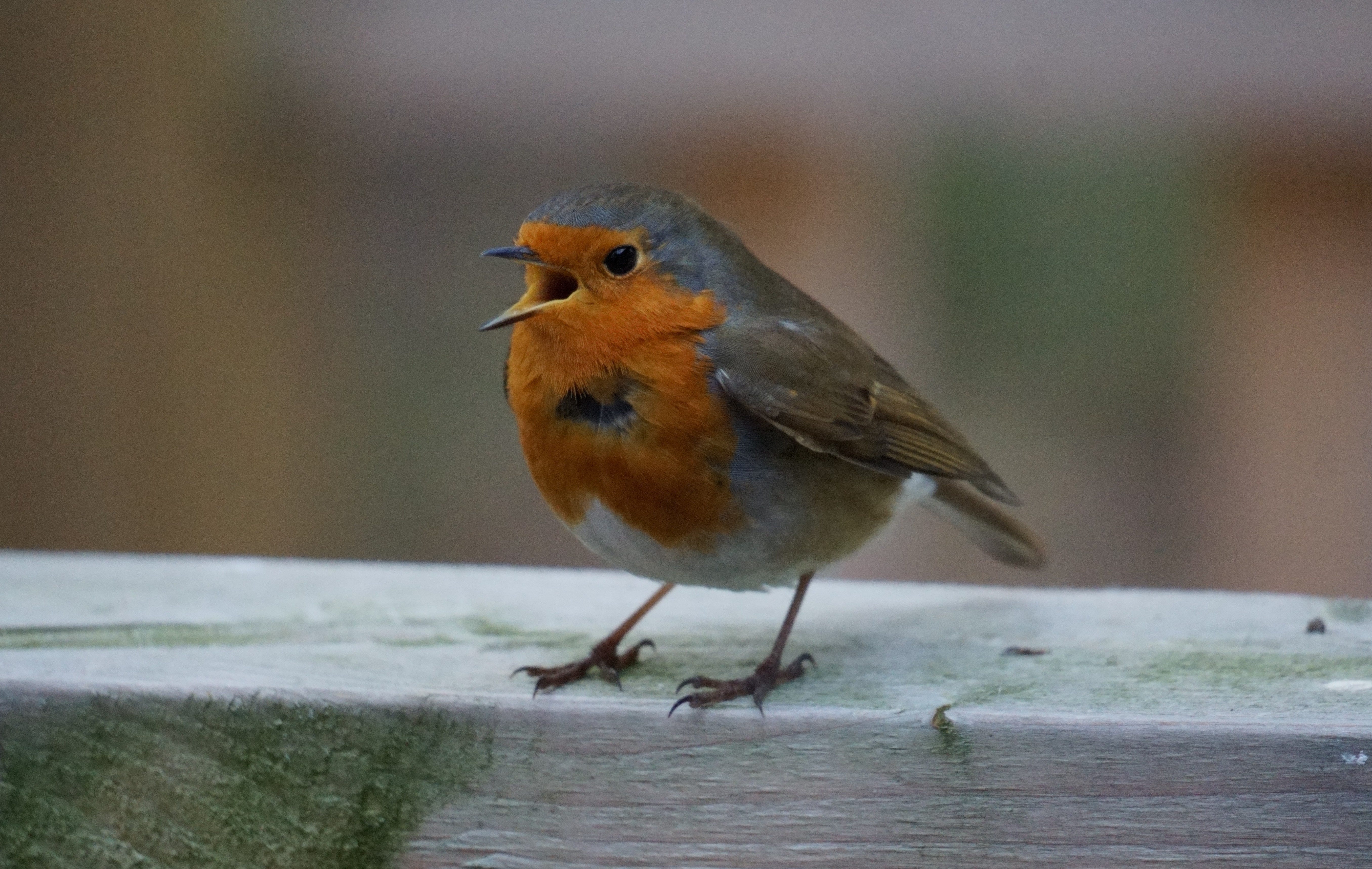 Directly in front of me, barely a meter away on the wooden handrail, a pocket-sized diva of a robin shouted at me until I directed my camera in her direction. Didn’t I know that she was the real star of the show? She fought to keep her balance as the wind ruffled her feathers, flashing the dark layer below the vivid red breast, but I swear she posed for me, not moving or flitting away until I had taken a good few shots and she was content that her magnificence had been appropriately appreciated.
