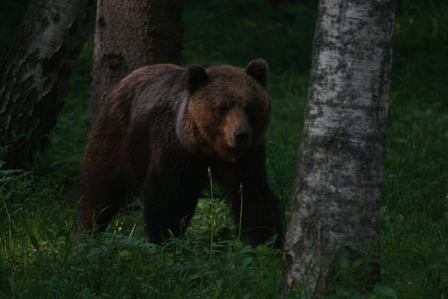 “Kate! Come here!” My mum hissed, trying to stay as quiet as possible while still conveying urgency. I knew what that meant. I dashed over to her forest side, and peered through the window, unbearably1 excited. It had arrived. A huge lumbering form plodded out from behind the tree trunks, a mass of sheer muscle covered in enticingly fluffy fur, with comically small, round ears perched on top of its great head. I thought again of the small bolt on the door, and the long hike back to the car, but he seemed utterly uninterested in the hides, snuffling around the trees, unconcerned with anything beyond what food he might forage out of the ground, stopping occasionally to lift his head and sniff the air.2 He headed around the hide and we raced across to the meadow side, desperate not to lose sight of him. Here he was, foraging again and so close to the front steps of the hide, completely absorbed in whatever it was he had found at the base of a tree. It was almost unreal, I’d never seen anything so enormous in the wild, been so close to an apex predator. I was simultaneously awed and a little scared. Neither of us said anything, just drinking in the experience, the only sound the rapid shutter clicks of my camera. Eventually he lumbered off into the trees and we were able to breathe again. We looked at each other, the huge grin that I knew split my face also reflected on my mother’s.