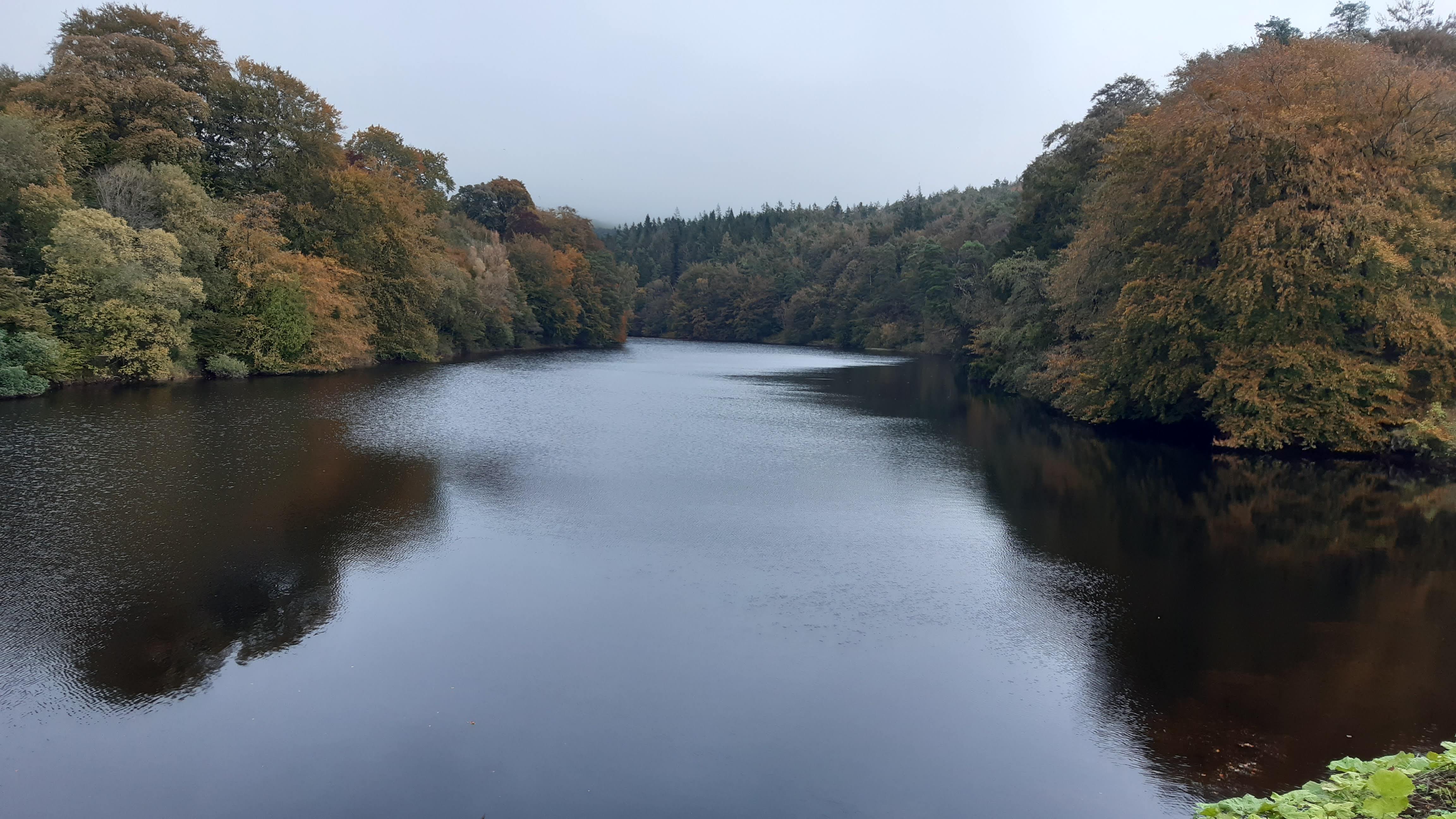 My next evening jaunt was to Clapham – not the district in London, the village in Yorkshire. A picturesque, shallow stream hustled between tree-lined banks and under an arched stone bridge. Following the water upstream I found a waterfall – lovely, if manmade, as part of the Ingleborough Estate. The Ingleborough nature trail wound further upstream from the falls and along the edge of a lake. At the tipping point of autumn, the woods hemming the lake were splotched with orange and yellow and an unreachable limestone crag peeked enticingly out between the leaves on the far side of the water. I wandered up through the The grounds of Ingleborough Hall were sculpted to the vision of Reginald Farrer, who, thanks to his botany fuelled travels was known, apparently, as the “Patron Saint of Alpine Gardening”. Given the havoc that rhododendron – one of his introductions to the estate – is wreaking on native plant life , I’m not sure I’d shout about that one, but sure.
