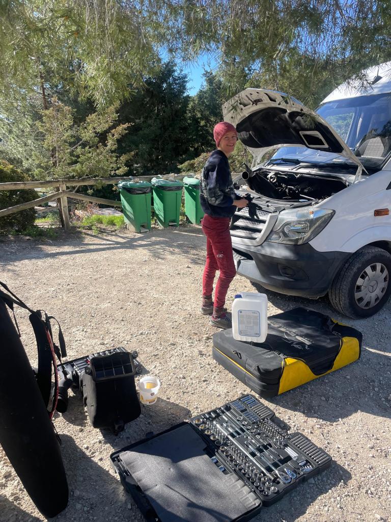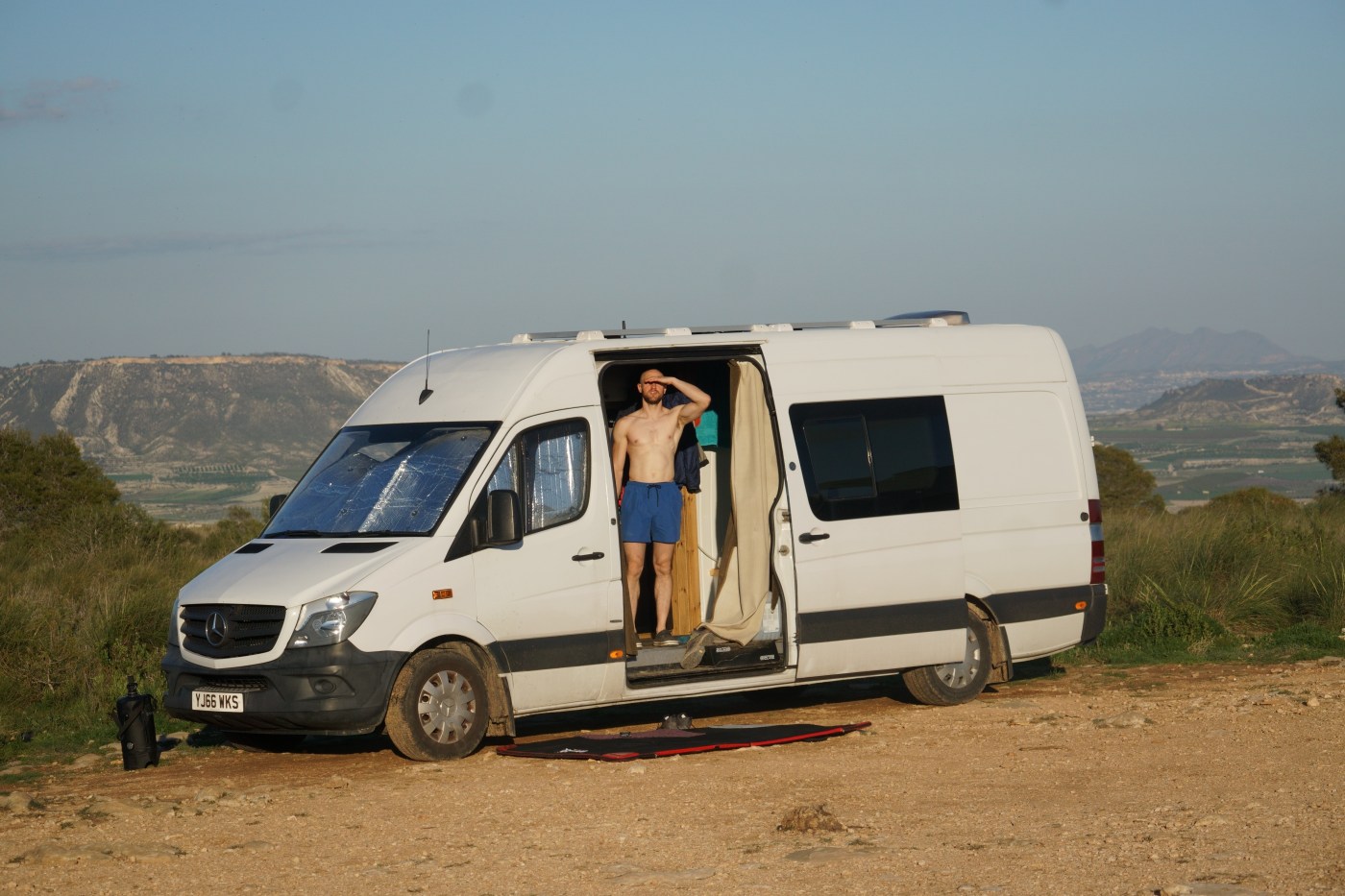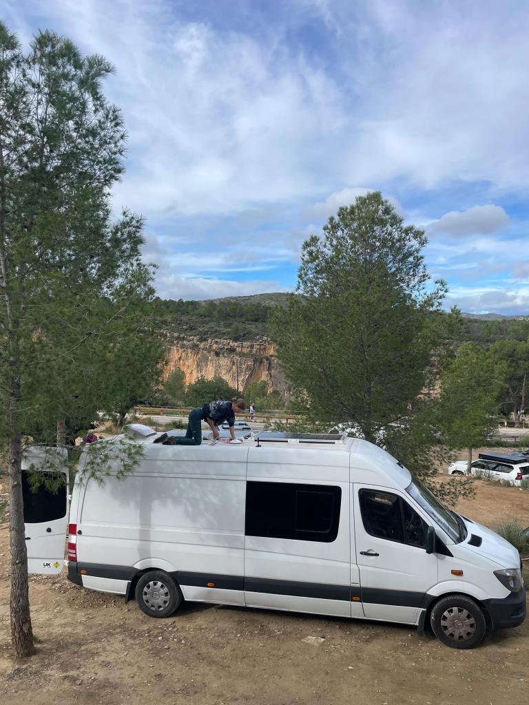 It’s funny, when you think about it. Our modern, western lives are a riot of complexity, notifications, scheduling, work, stress – lives that ultimately we aren’t designed for. On that plateau, with minimal phone and internet signal, in a van where everything takes longer than it does in a house, my life shrank down to the very basics – sleep, sustenance, waste management and exercise. The focus becomes simply existing. In my house in the UK I effectively had unlimited water. I could turn on a tap full bore, and not have to worry about where it was coming from or how much I was using. I could have hot showers whenever I wanted. I could flush the toilet and my waste would disappear as if it never existed. If I ran out of anything I could pop to the Co-op 30 seconds down the road and replenish as needed. Basic existence is a footnote in a busy life. In a van, you become intimately aware of what you’re using, and exactly how much of it. Uncomfortably aware of your environmental impact. The average person in the UK uses 142 litres of water per day, which is actually quite shocking. In the van, about 80 litres lasts two people about 5 days, so about 8 litres of water per person per day (including drinking water). Washing up dishes is done in less than an inch of water boiled in the kettle, sporadic showers are done with sun-warmed(ish) water in a 10L bag shared between both of us. (Hands are still washed thoroughly, my germaphobia allows nothing less). Our electricity comes from solar panels and moving the van – we have no mains hook-up. We have to be aware of how much electricity we’re using, dependent on how much solar power we’ve reaped that day. On particularly dreary winter days, it’s not unheard of to go to bed early and read by a single light, so that there’s enough left in the leisure battery to guarantee the fridge will run all night.