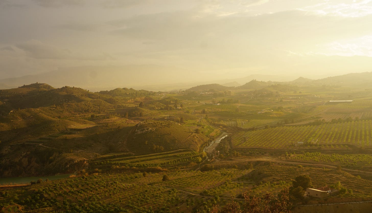 After the chilly, forested shade of Albarracín, the sunny days at Ferrari were a dream. Each evening as the sun began to sink off to the west, the golden hour illumination turned the view of the orchards and hills below us into a painting, a landscape of dreamy pastels and diffuse light like a vision rendered in oils. The vibe of the crag only added to its charms – one or two weekdays we had it to ourselves, but the weekend days were busy (but not rammed) with friendly local climbers happy to share their beautiful rock.
